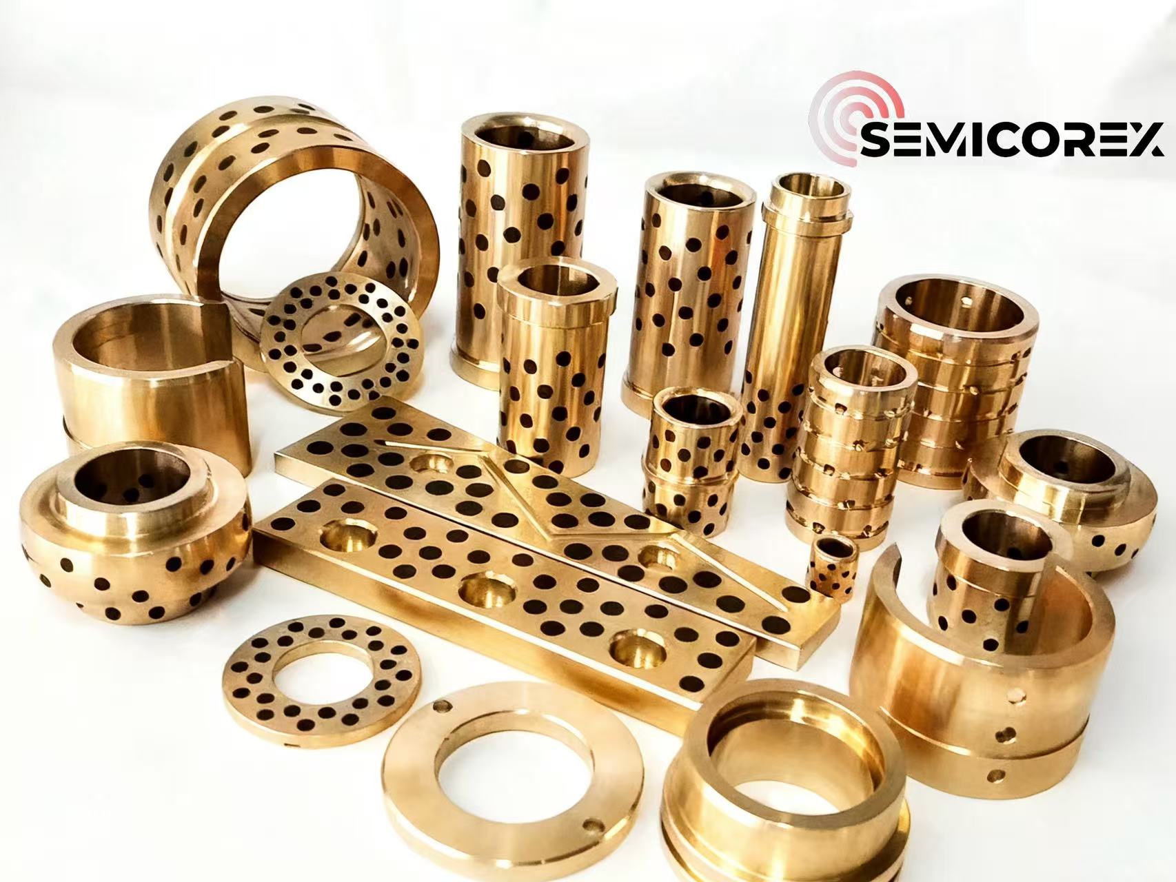Semicorexbantalan yang melumasi sendiriadalah produk dengan sifat melumasi sendiri. Mereka dibuat dengan membuka lubang-lubang yang tersusun rapi dengan ukuran yang sesuai pada permukaan gesekan logam dari dasar bantalan dan menyematkannyagrafitdengan sifat pelumasan sendiri yang unik sebagai pelumas padat. Semua permukaan dasar bantalan dikerjakan dengan mesin. Proses pemesinan ini memastikan dimensi dan toleransi bearing yang akurat, yang sangat penting untuk kinerja bearing yang dapat melumasi sendiri dalam aplikasinya. Permukaan logam yang diproses secara halus memudahkan pekerja dalam memasang dan menyelaraskan komponen, meningkatkan efisiensi operasional, dan mengurangi risiko keausan bantalan.